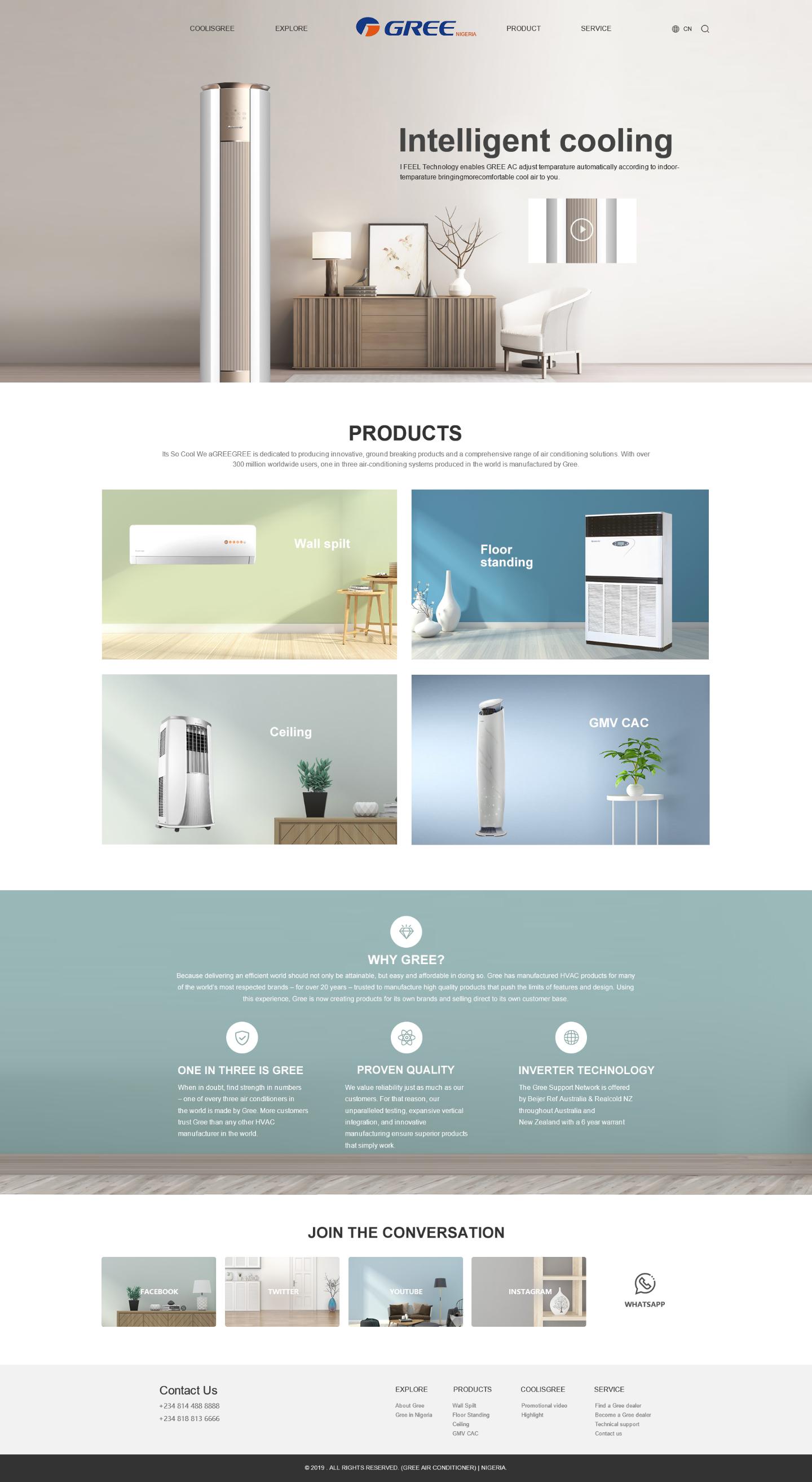 优网科技与格力官网合作搭建网站改版建设,致力于为格力英文版官网提供网站建设、跨终端的互联网解决方案及技术服务。官网搭建中英文网站响应式网站,同时根据微信公众号的菜单需求制作微信公众号服务预约,为用户提供便捷的使用途径。此次网站建设优网科技积极响应并提出来改版的深度见解,经过前期的项目调研了解,网站建设方面主要体现国际、大气风格特色,使得改版后的网站更加符合格力在英文版网站形象特点。网站设计色调运用比较清新自然的色调风格,采用比较多的色块模式,体现网站的国际、大气风格特点。高端跟品质感结合,衬出格力空调的温馨及高端感。