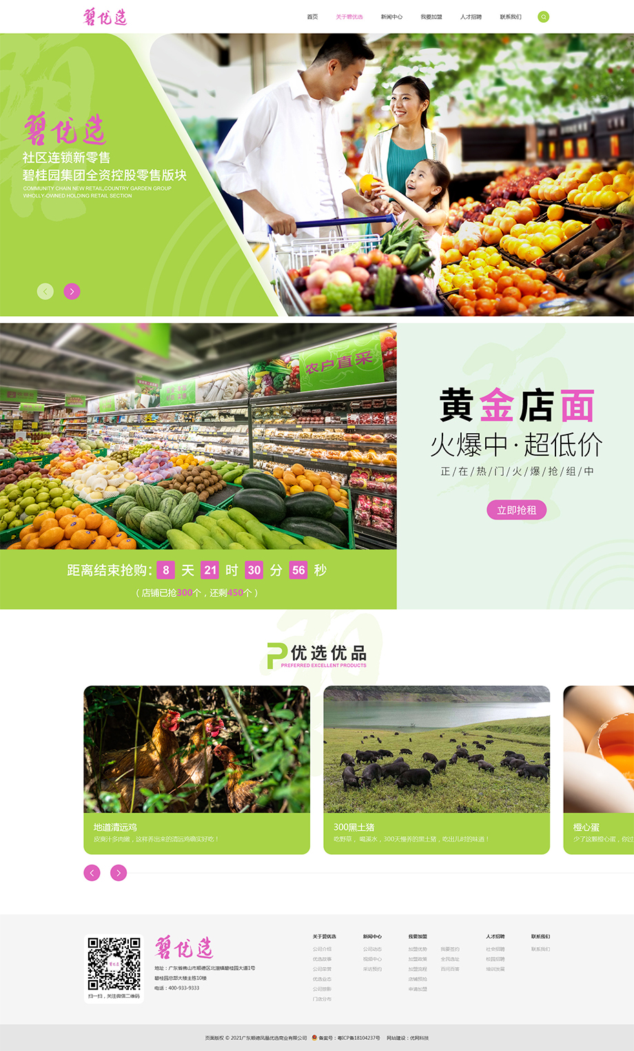 碧优选是碧桂园集团旗下的全资子公司,是一个围绕社区居民生活需求所推出的社区生活服务品牌,碧优选采用生产销售一体化的业务模式通过社区生活超市、线上商城等立体业态组合,为社区居民提供特色生鲜食品、日用品和健康生活服务,打造“覆盖社区生活最后100米”的一站式全方位生活服务平台。本次与优网科技合作,就是官方平台的开发制作,整体项目制作周期短,双方合作的很愉快!