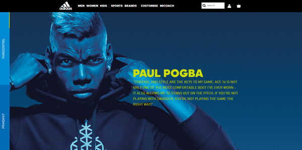 作为一个运动品牌,设计师通过一系列时尚而现代的高素质图片来体现它的特质,而统一的深蓝/明黄配色则让整个网站的气质和氛围保持了高度的一致,个性也得以凸显。