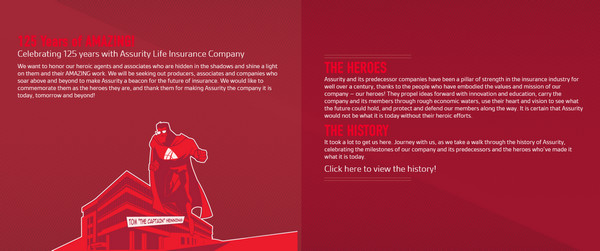 Heroes and History 同样也是一个双色配色网站,主要的色调是红色,作为网页主要视觉要素的插画也同样是如此。和其他的页面不同,双色搭配中的另外一种是白色,除了网站的文本之外,插画的外轮廓和少数几个元素使用的是白色,让插画的风格和特色更加明显。
