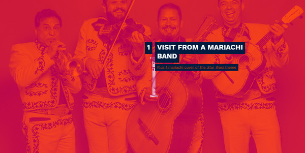 MailChimp 的回顾页面的配色也可以称得上绚烂,火热的红和冰冷的蓝合二为一。为了保证统一性和体验的一致性,设计师将背景图片也转化为和两种主色调一致的色彩。
