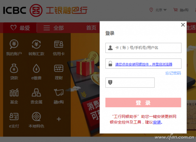 以工商银行的个人银行网页举栗,小优用Chrome浏览,根据提示下载控件安装并重启后,还是那个样子,根本无法输入。