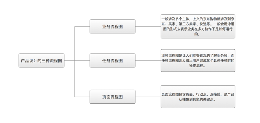 产品设计中涉及的流程图有三种,业务流程图、使命流程图、页面流程图。