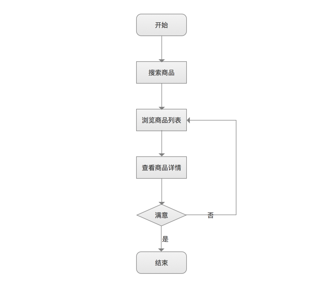 泳道图从战略层分析了整个业务流程,接下来要去分解到各个任务层具体是如何操作的,例如上面买家选购商品这个任务就涉及到搜索商品、浏览搜索结果、查看商品详情、若满意则进入订单任务,若不满意则返回到搜索结果或者重新搜索,这就是具体的某个任务的流程。