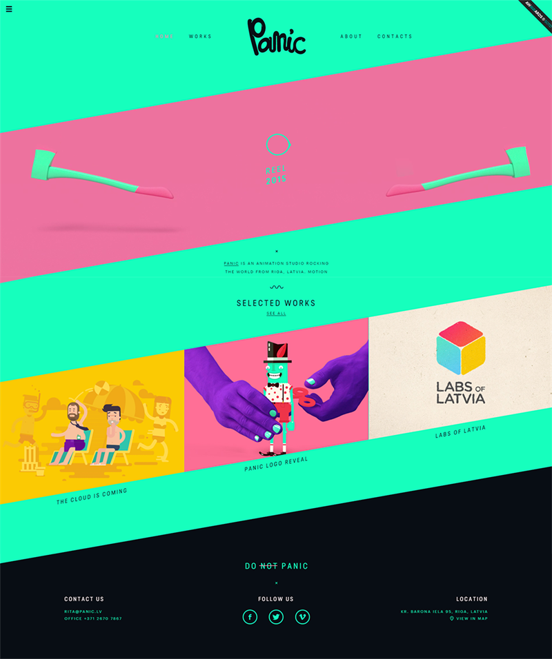 这种骨架样式通常是基于某一个网格而搭建内容,网格的表现形式多样,每个网格都用以展示不同的内容,可以是比较规范的网格,也可以是错落有致……虽说每个网页都可以基于网格而设计,但是网页的表现未必要严格遵循网格本身。