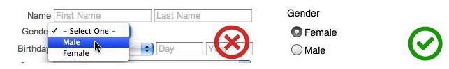 Radio按钮用于在用户有多个选项,但用户只能选择其中一个的时候。让用户进行有限选择,而非直接输入的方式,可以比较有效地减少用户输入错误的数据。