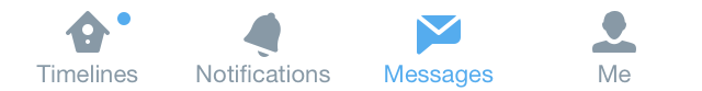 iOS版Twitter的底部菜单栏。Messages是当前选中项。