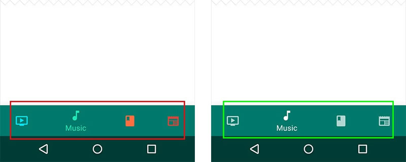 Android规范建议按照下图的尺寸设计移动端的底部导航栏。