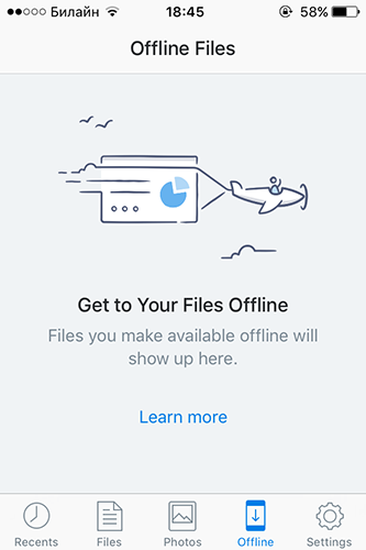 不要因为功能不可用就移除某个标签。如果你在某些情况下移除一个标签,其他情况确保留,就会让你的app界面感觉不可靠、难以预料。解决方案是保证所有标签都是可用的,然后解释为什么某个标签没有内容。例如,如果用户没有离线文件,Dropbox里的Offline标签会显示一个界面,教你如何添加。这个功能就是空状态。