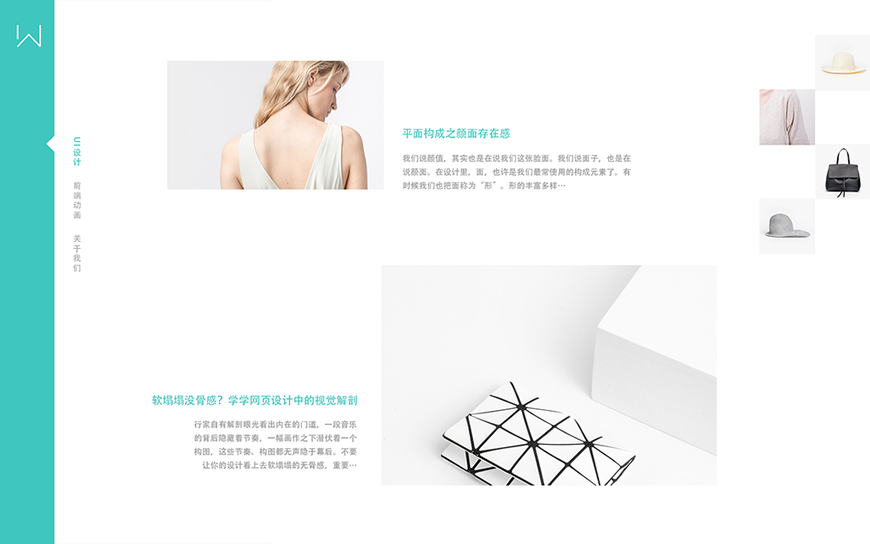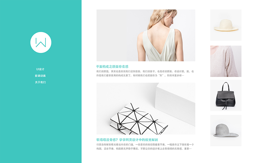 当然,你会说这样其实并没有什么不好,因为几乎我们所有看到的扁平化网页都是这个样式,但可以肯定的是,这个网页并没有多少呼吸的空间,整个网页都被信息所填满,如果稍微改变一下布局的元素大小和位置,其实就会展示出不一样的版面效果(下图),而很显而易见后者的排版是更为灵活的。