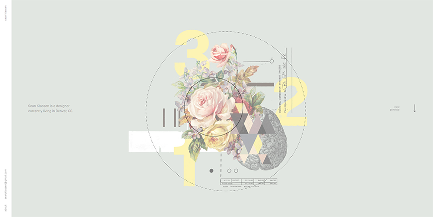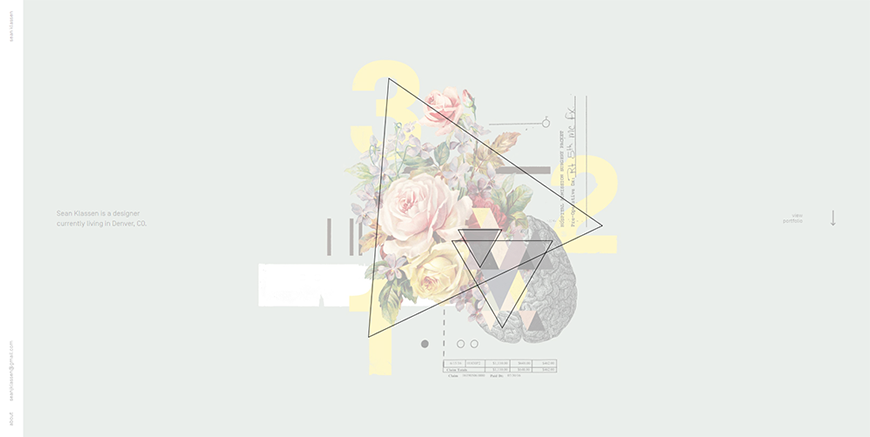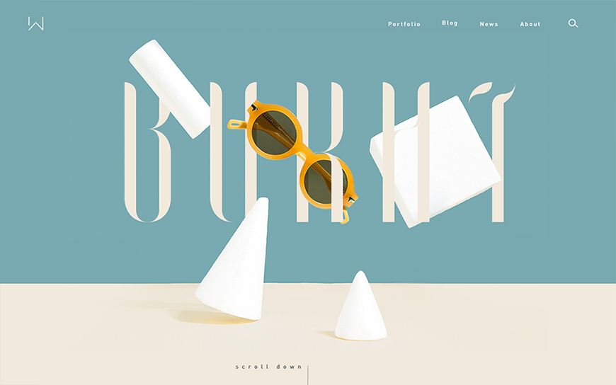 这个页面设计中,字母与静物交相融合的区域位于正中,成为虚焦点,而利用色彩的对比,那副黄色眼镜又从虚焦点的区域突出出来成为实焦点