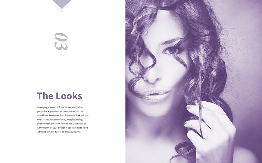由于三角其实也是矩形的一半,因此用三角形来引申出矩形的意向,经过巧妙地构图安排,同样可以发挥矩形布局的效果。