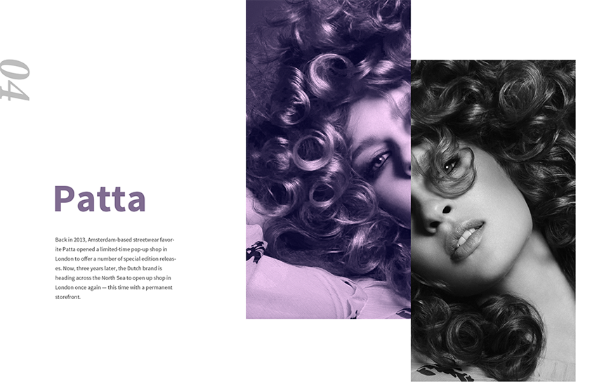 下面这个设计是由许多小插画所聚合的一个页面,一不小心就陷入凌乱,而设计师将这些插画分为三块内容,每块内容用背景色分区,形成三个矩形,这是形状的统一。这些插画的材质和风格也统一,同时插画的物体所展示的方向也都是往斜下方,也形成了一种统一。因此,你可以看到这个画面的对比的力量相对较弱,焦点是左边的矩形这一点没有人怀疑,而这个焦点里的插画可以看到是一件男士衬衫和女士衬衫,男女用品的形成了对比。这个对比相对而言并不十分强烈。