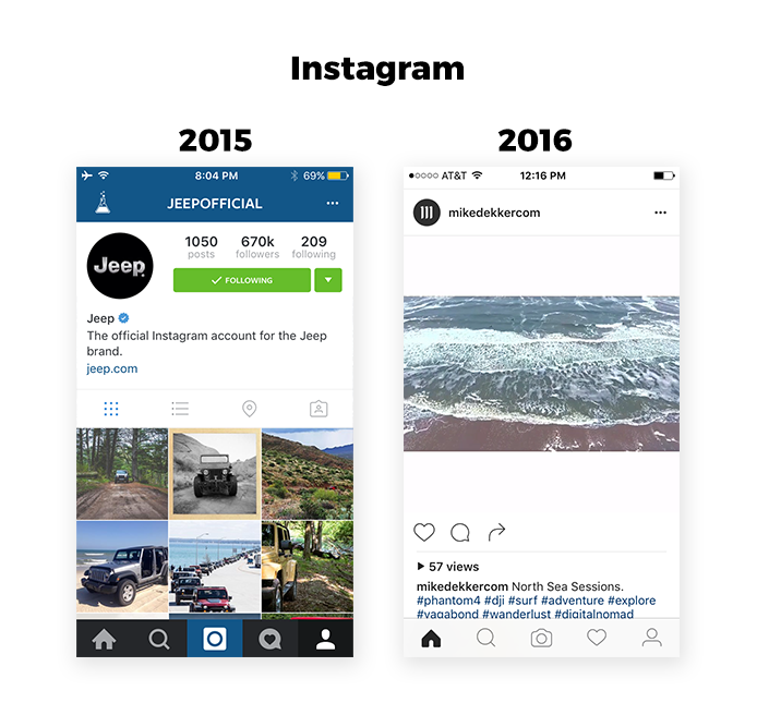 早在5月份,Instagram发布了新设计的UI时,我次注意到这种新趋势。