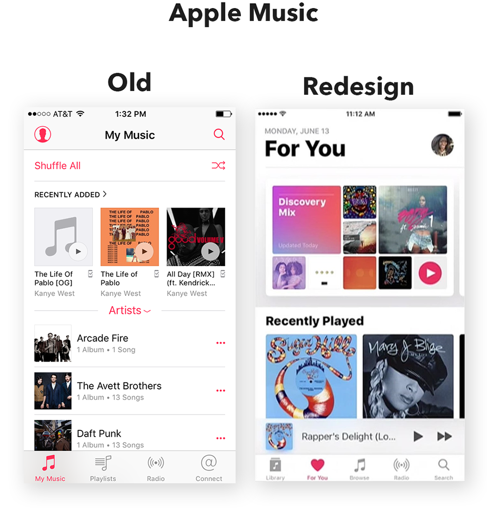 发布会中有一点特别吸引我。那就是Apple Music的改版设计。虽然它改版的重要方面是用户体验提升和新增功能,但我首先注意到的是它的朴素。Caitlin McGarry,Macworld的本报记者就很准确地描述了这次更新,“它有一套全新外观,巨大的卡片、加大加粗的字体、干净的白背景,突显唱片艺术。”