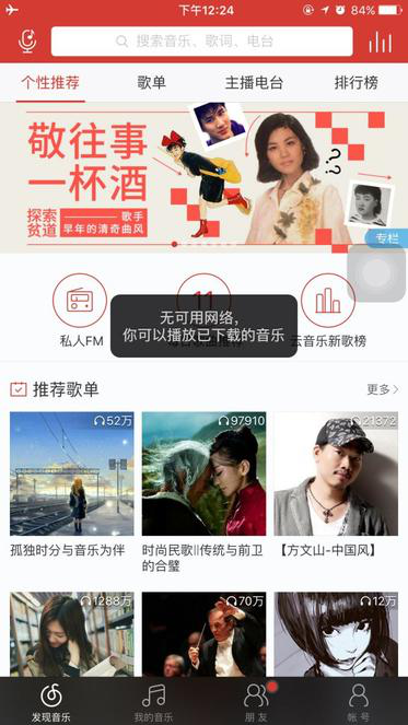 接下来开始说说一些空状态页面优化的处理方法,以网易云音乐为例: