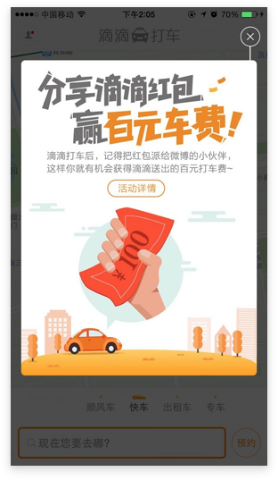 1. 广告内容明确,主体不要偏。做过平面设计的同学都知道,每次领导来一个需求,要求你设计一张banner或者海报之类的物料,恨不得把所有东西都摆上去,显得内容丰富(其实我们都知道,low爆了)。但是在设计App广告弹框时,必须要记住,你要宣传的东西得很清晰,很明确。
