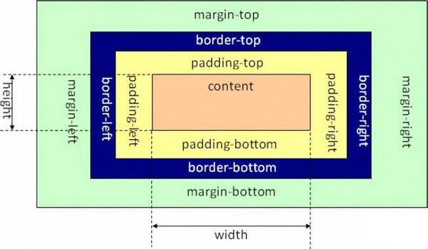 下图是随便网络一搜就能搜到的,但其实在实际使用中,width不仅仅是content里面的宽度,应该是要加上黄色的部分,曾经我有web工程师面试的时候就有这么一道题。或者说把紫色的边也加上,因为这些区域,除了空出来,服务于content,也放不了其他的了。且在没有margin的情况下,别的div要排也是贴着border,so……你懂的……-_-|||