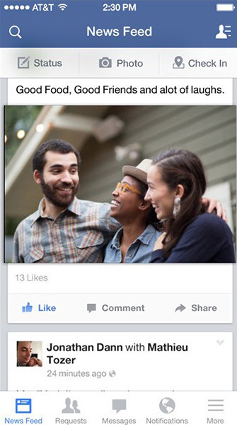 卡片出现在一个信息流中时,便能够创建出一系列符合自然时间轴的事件。想想看 Facebook 在新的信息流中是如何使用卡片来描述一个事件概述的。虽然总的信息流是无底限的,但是每一个卡片都是互相独立,且包含了一定的可供操作的内容。