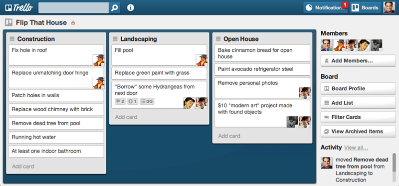 卡片很容易将一定范围的任务进行归类。拿 Trello 来举例说明再适合不过,从 Kanban 里面看,所有的管理项都是完全基于卡片的,每一个板子了都填充着卡片,而每个卡片都代表一个单独的任务。
