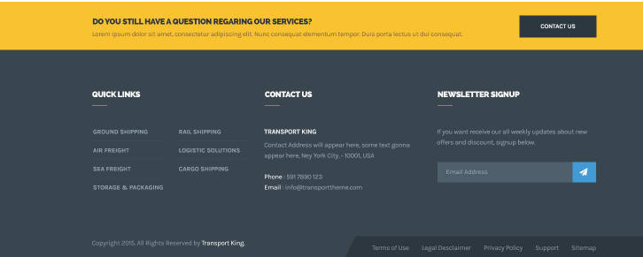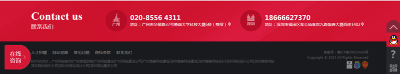 在FOOTER部分可以放置电话号码、企业邮箱、企业地址、地图,资料请求等等的链接,这样放置会极大方便用户查找企业的联系方式。