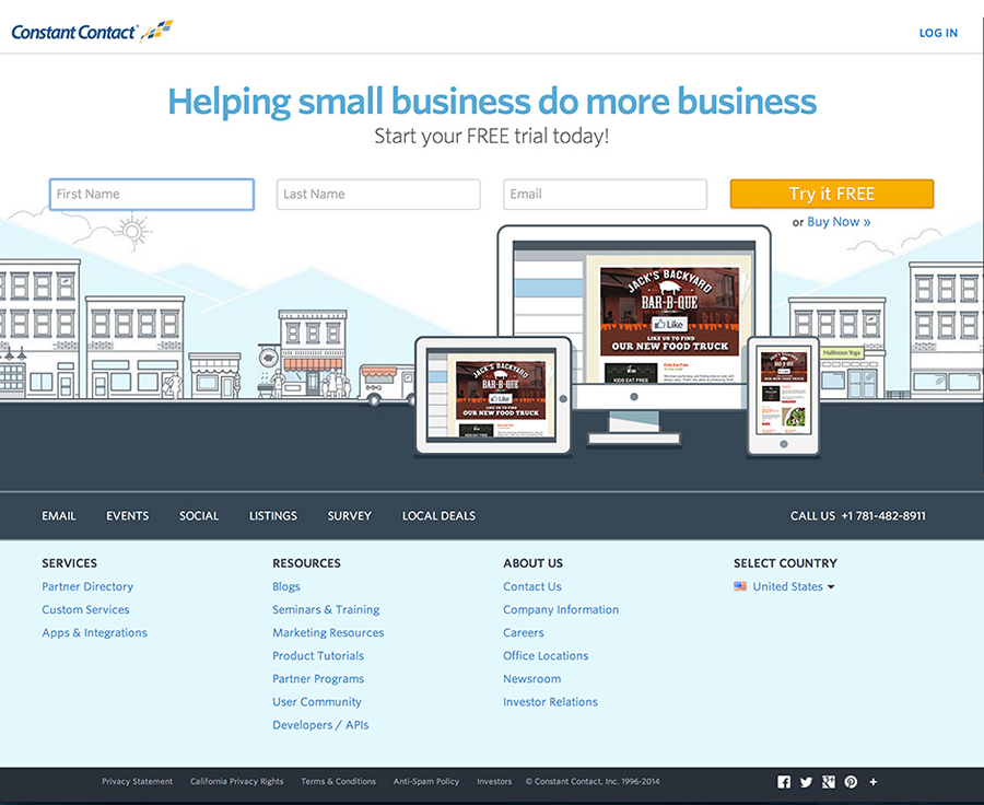 只是稍稍对字号大小进行调整,或对色彩进行更改,就会马上改变整个界面的视觉效果。例如,当你看到下面这个网页时,把浅色的背景换为深色,首页引人注目的“try it free”的首要按钮马上在视觉重要性上降级,而下方的“call us”就会升级为首要的按钮。