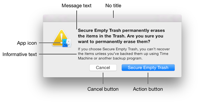“删除”和“擦除”相关的操作应当多留意。你有没有误删文档事后发现追悔不及的情况?许多用户并不会仔细阅读对话框中的确认信息就作出选择。但是有时候,用户确实是阅读了提示,但是依然手滑作出了错误的选择。(在应当“取消”的时候不小心点了“删除”)