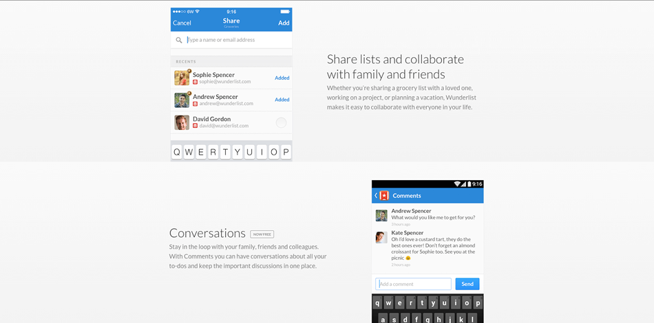 Wunderlist页面就使用了非对称式的留白,合理的留白设计让布局显得有趣而不单调。通过Wunderlist 的布局,我们可以总结一下这种设计模式: