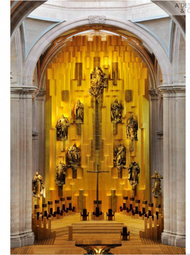 这是一个建筑设计,整个版面,采用黄色的一个渐变度来进行设计,元素采用欧洲的那种宗教元素,让整个空间拥有天堂般的神秘感觉。