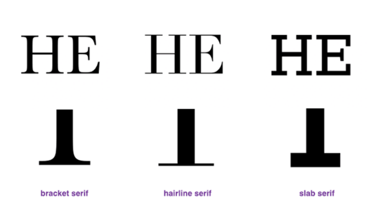 衬线体还有另外一种分类方式,根据衬线变化可以分成三类:具有特定曲线的衬线为“支架衬线体”,连接处为细直线的是“发丝衬线体”,厚粗四角形的“板状衬线体”。