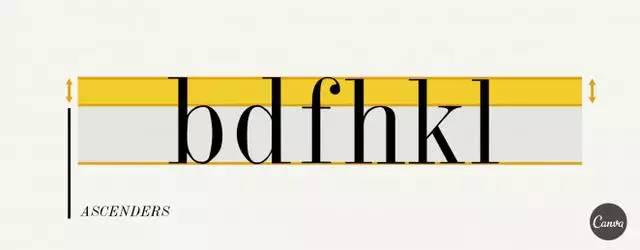 Ascender 指的是小写字母中高于x高度的部分。诸如字母 b、d 和 f。