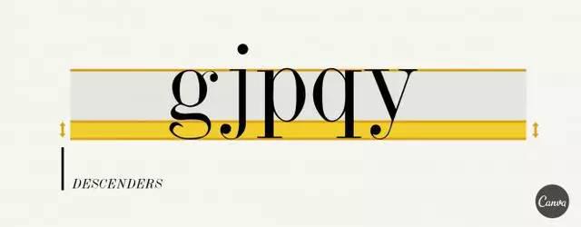 Descender 通常指的是小写字母从x下方延伸出来的部分,诸如字母 g、j 和 p。
